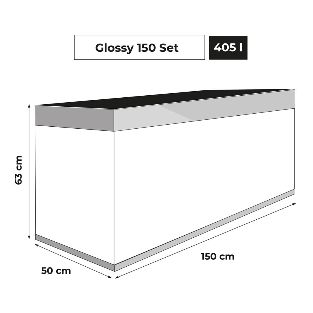 Aquael Glossy SAFE TANK 405l 150x50x63 szary zestaw oświetlenie Day&Night 3x17W + SZAFKA