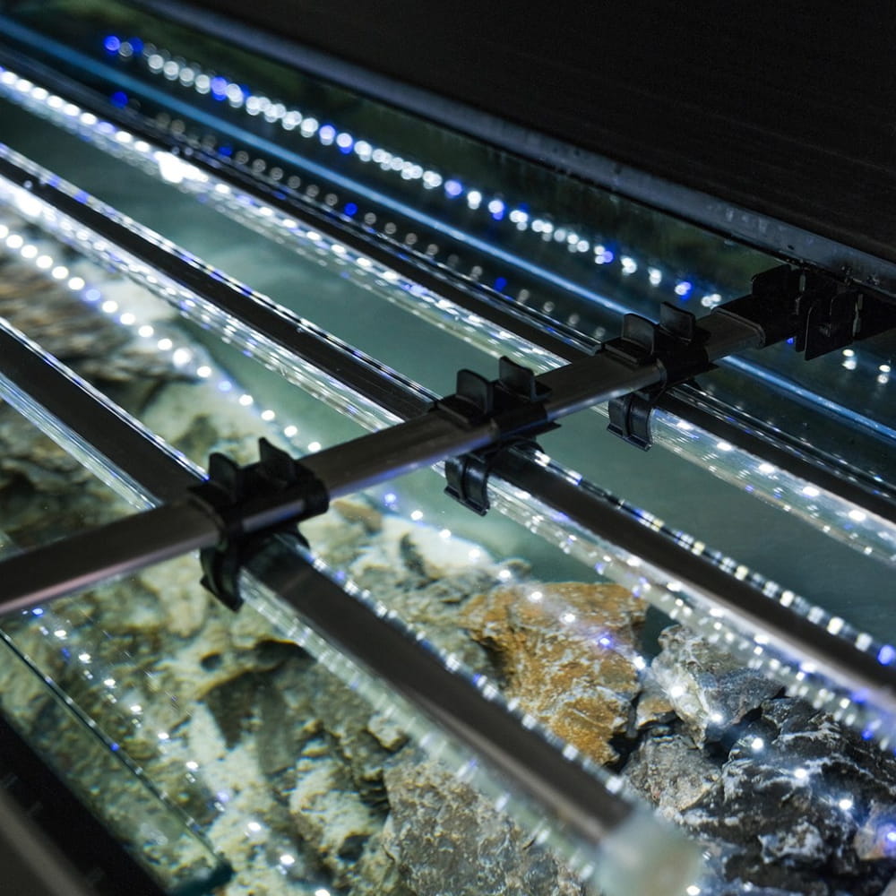 Zestaw wyposażony został w profesjonalne oświetlenie LED Day & Night. Każdy moduł o mocy 17W posiada trzy tryby pracy umożliwiający mieszkańcom akwarium zgranie się z naturalnym rytmem przyrody: