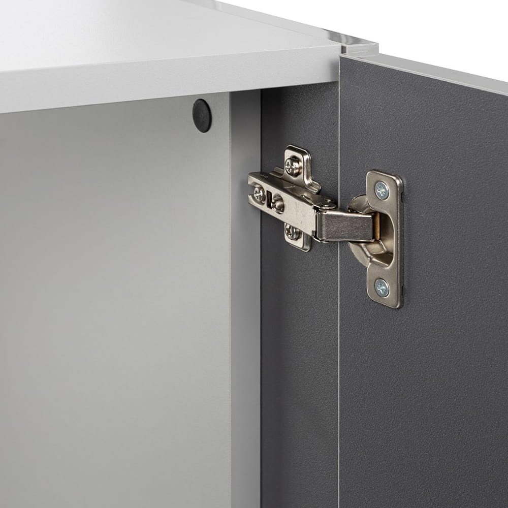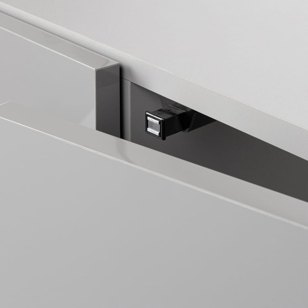 Drzwiczki szafek otwierane są za pomocą mechanizmu tip on, po delikatnym naciśnięciu całego frontu drzwiczki lekko uchylają się. Rozwiązanie to pozwala na uzyskanie jednolitego frontu mebla bez dodatkowych uchwytów. Wnętrze jest przestronne i pozwala na ustawienie wszystkich niezbędnych akcesoriów jak filtry zewnętrzne czy zestawy dozujące CO2. Z tyłu szafki jest odpowiednio dużo miejsca aby wyprowadzić węże i kable.