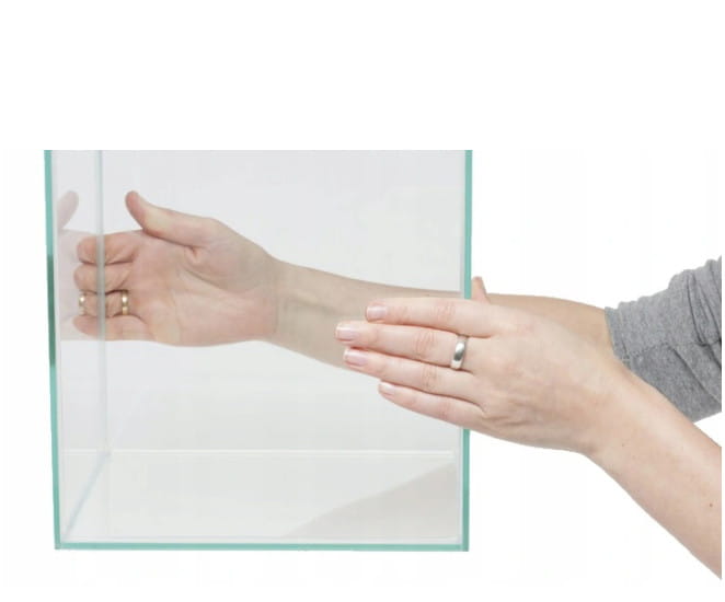 Akwarium wykonane jest ze szkła Float o grubości 4mm, całość sklejona za pomocą bezbarwnego silikonu.