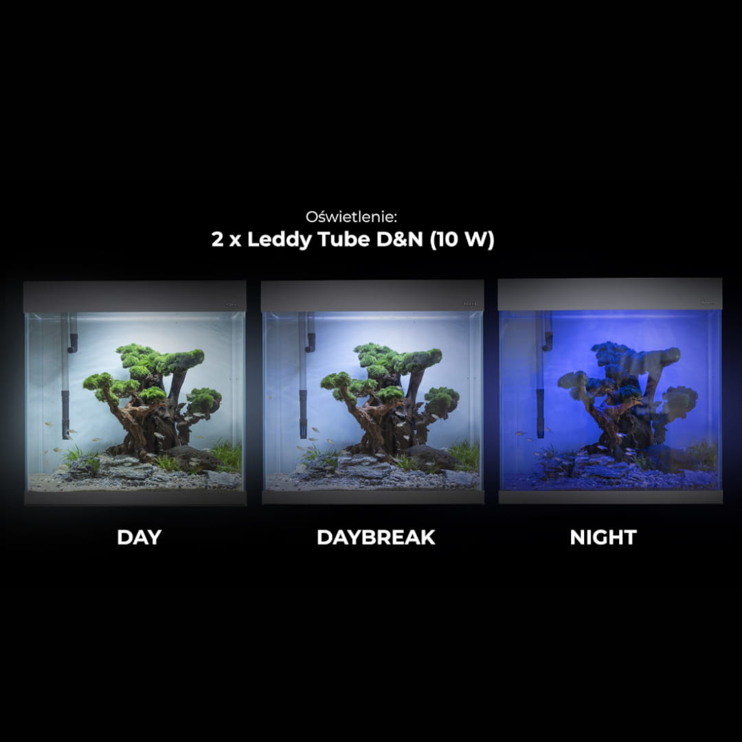✅ Oświetlenie Leddy Tube Day & Night w zestawie. Trzy tryby świecenia DAY / DAYBREAK / NIGHT. Niskie zużycie energii i nowoczesna technologia LED