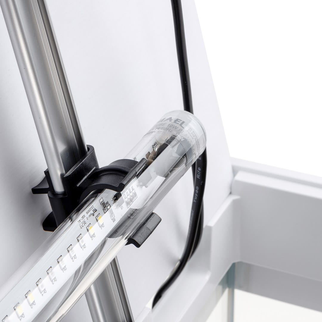 Wysoki współczynnik oddawania barw Ra >80 w trybie DAY podkreśla naturalne kolory ryb oraz roślin. Dzięki zastosowanemu nowoczesnego oświetlenia LED w pokrywie zużywa do 65% mniej energii w porównaniu do zwykłych świetlówek.