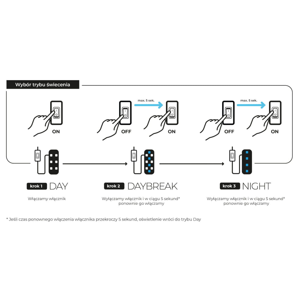 ✅ tryb DAY – podstawowe i najmocniejsze światło, do oświetlania akwarium w ciągu dnia to światło białe 6500K