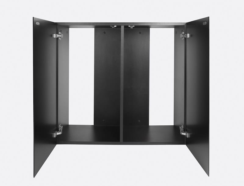 Drzwiczki szafek otwierane są za pomocą mechanizmu tip on, po delikatnym naciśnięciu całego frontu drzwiczki lekko uchylają się. Rozwiązanie to pozwala na uzyskanie jednolitego frontu mebla bez dodatkowych uchwytów. Wnętrze jest przestronne i pozwala na ustawienie wszystkich niezbędnych akcesoriów jak filtry zewnętrzne czy zestawy dozujące CO2. Z tyłu szafki jest odpowiednio dużo miejsca aby wyprowadzić węże i kable.