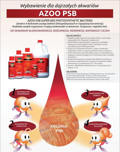 Azoo PSB, bakterie fotosyntetyczne, dojrzałe akwarium, redukcja NO3, siarkowodór H2S, bakterie akwariowe, podłoże akwarium, akwarium morskie, akwarium słodkowodne Tagi produktu