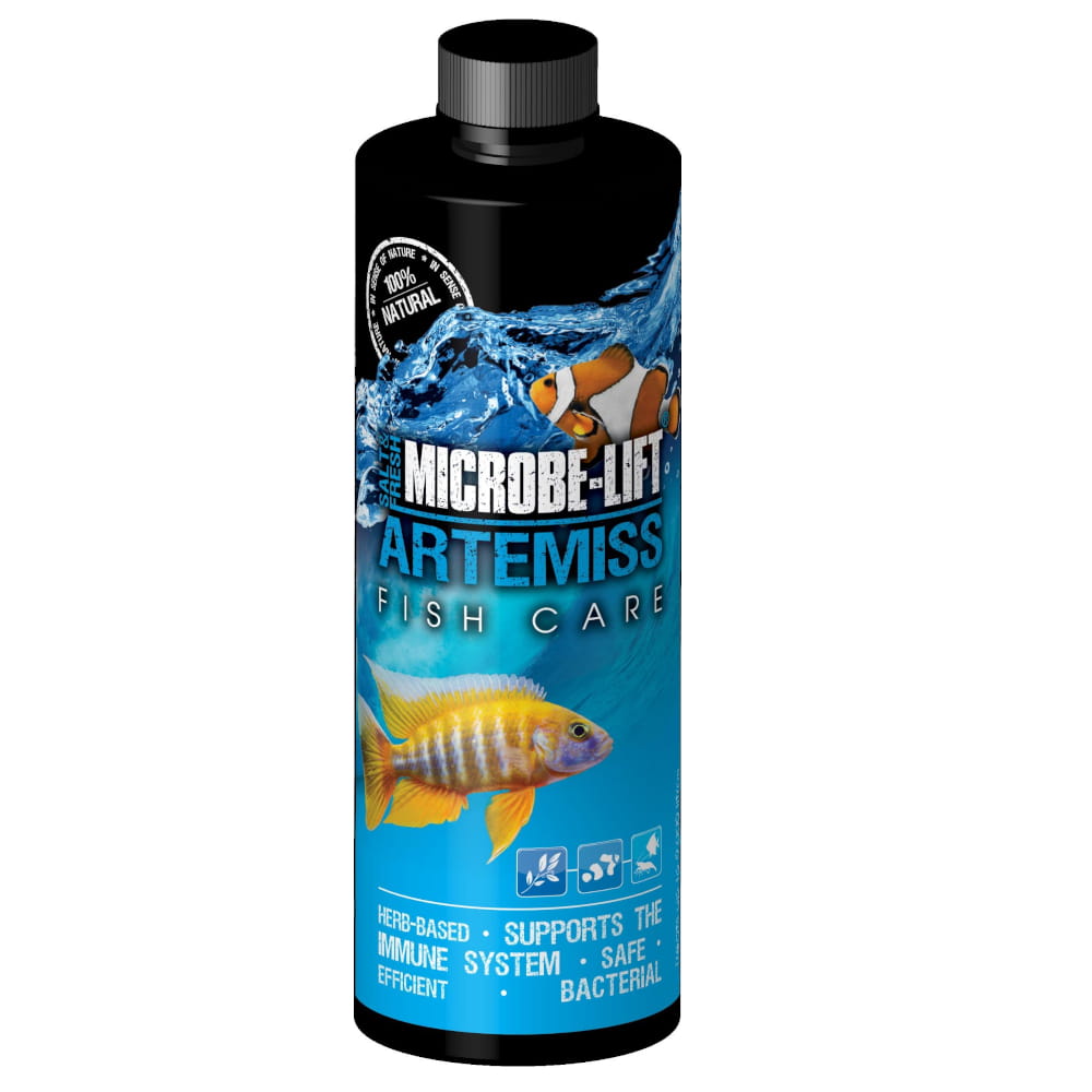 Microbe-lift Artemiss to unikalny i opatentowany środek oparty na naturalnych ziołach będących podstawą jego składu. Preparat w przeciwieństwie do zwykłych leków innych firm nie niszczy pożytecznych bakterii oraz nie destabilizuje środowiska w akwarium. Po jego zastosowaniu nie ma potrzeby przeprowadzania podmian wody i filtrowania jej przez węgiel aktywny.