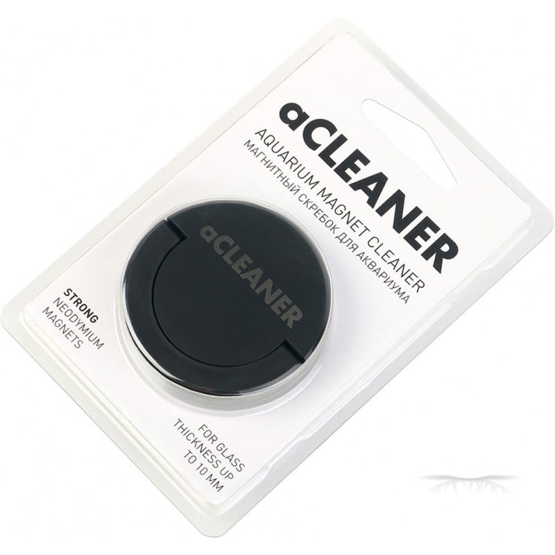 aCleaner – magnetyczny czyścik nadający się do akwariów o grubości szyby max do 10mm. Jego zadaniem jest oczyszczanie szkła z glonów I innych form porastających szyby. Mocny magnes neodymowy niezawodnie utrzymuje środek czyszczący na ścianie podzas pracy. Średnica czyścika wynosi 5,5 cm. Wnętrze skrobaka nie tonie w wodzie, natomiast zewnętrzna część wyposażona jest w wygodny, składany uchwyt. Może by wykorzystywany w akwariach słodkowodnych jak i morskich. Kwadratowy kształt wewnętrznej części pozwała skutecznie oczyścić rogi akwarium.