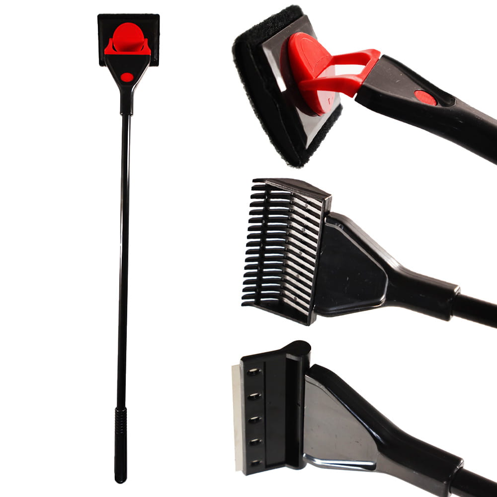 Do zestawu wchodzą: obrotowy czyścik z gąbką, łopatka do piasku i skrobak do szyb. Takie akcesorium jest niezbędne do każdego akwarium.