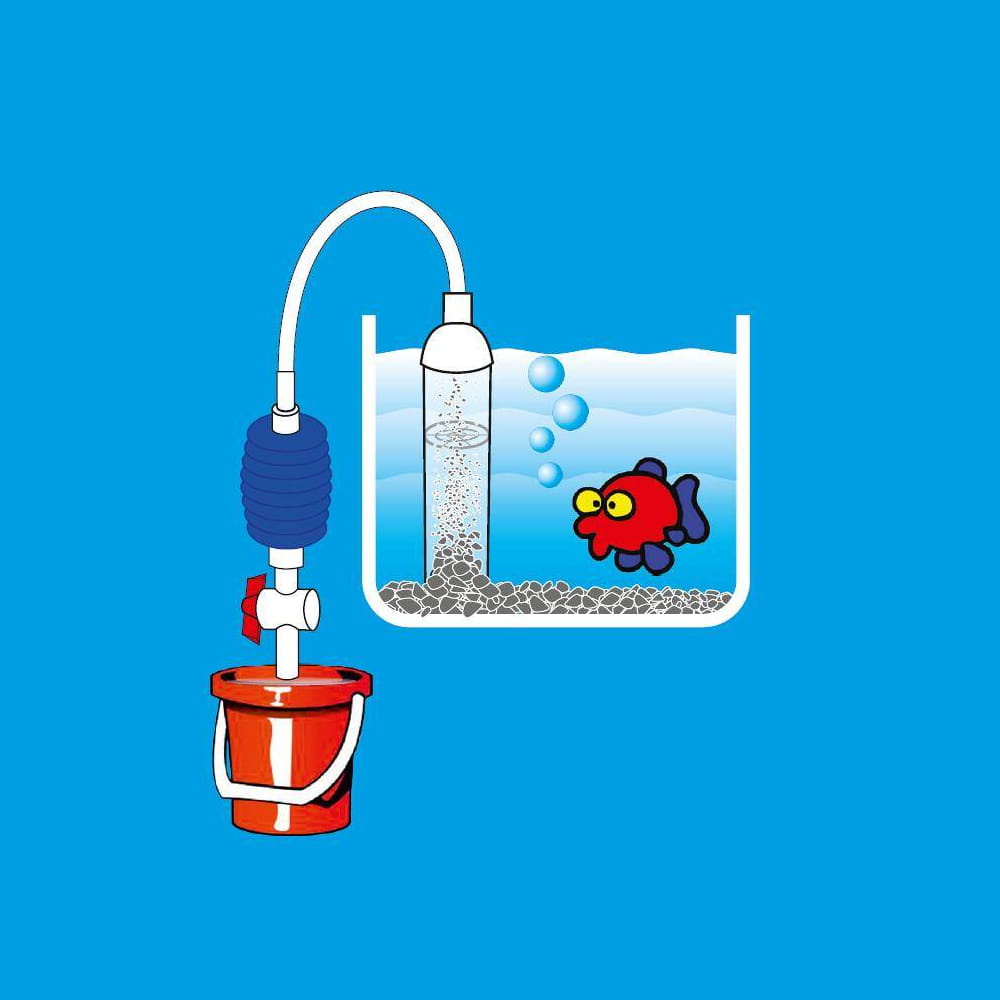 Dzięki wbudowanej pompce i zaworkowi po zassaniu z wypływającą wodą usunięte zostaną odchody ryb, fragmenty liści roślin, resztki pokarmu, muł i inne zanieczyszczenia gromadzące się w podłożu.