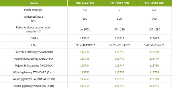 Dostępne są trzy modele o wydajności 300, 500 i 700 l/h przeznaczone do pracy w akwariach o pojemności od kilkudziesięciu do 250 l. Ich walory użytkowe sprawiają, że świetnie sprawdzą się w zbiorniku zarówno początkującego jak i bardziej zaawansowanego akwarysty.