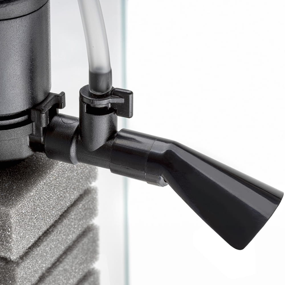 Filtr wyposażono również w końcówkę kierunkową, która dba o skierowanie przepływu wody zgodnie z własnymi preferencjami. Możesz ograniczyć prąd wody w akwarium poprzez skierowanie go np. na ściankę zbiornika lub płytko pod wodą, aby wytworzyć jej falowanie.