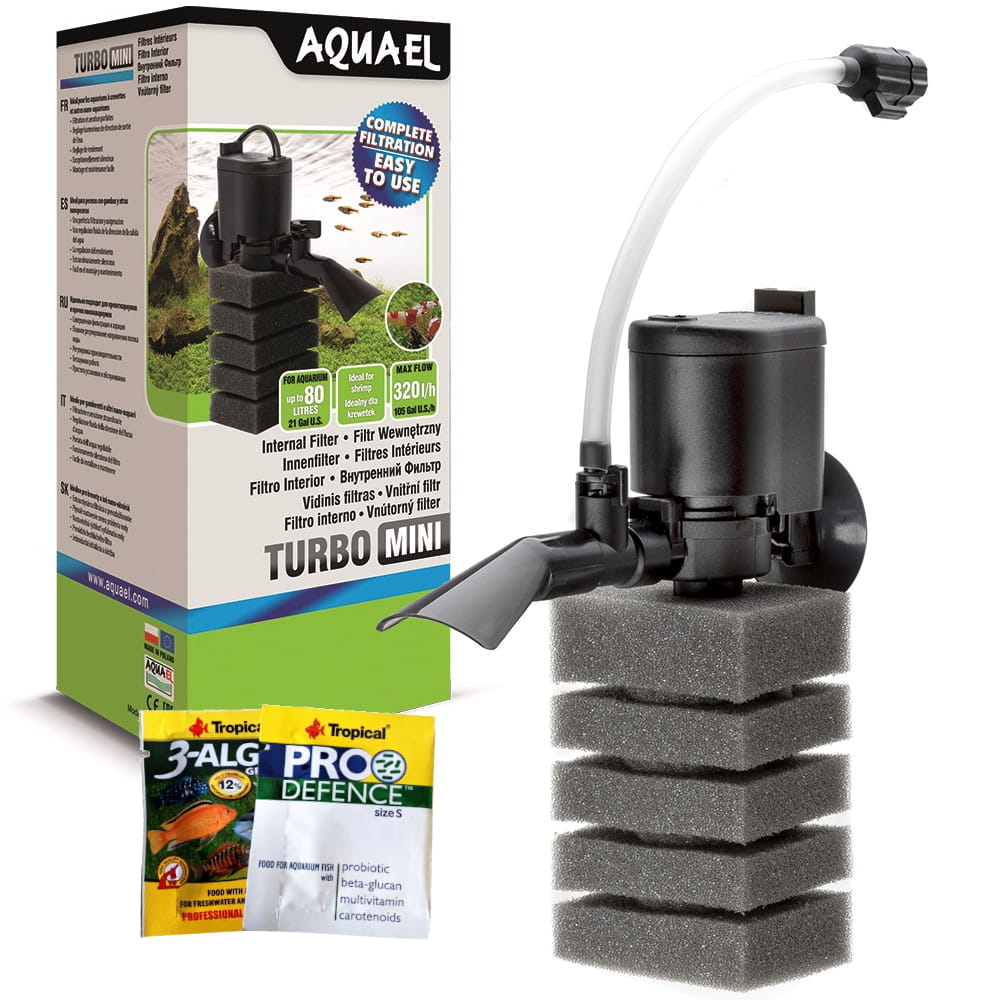 Turbo Mini od Aquael to kompaktowy filtr do akwariów słodkowodnych. Stworzony specjalnie z myślą o zapewnieniu najlepszych warunków życia krewetek i małych ryb. Zapewni odpowiednią filtrację wody w zbiornikach od nano aż do 80 l pojemności przy zużyciu minimum energii.