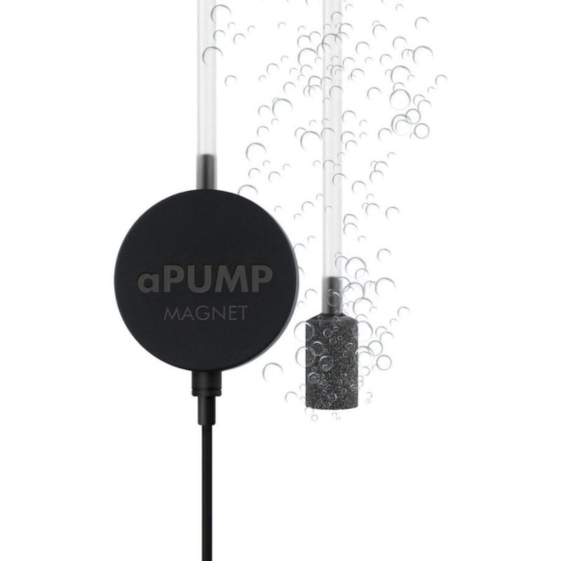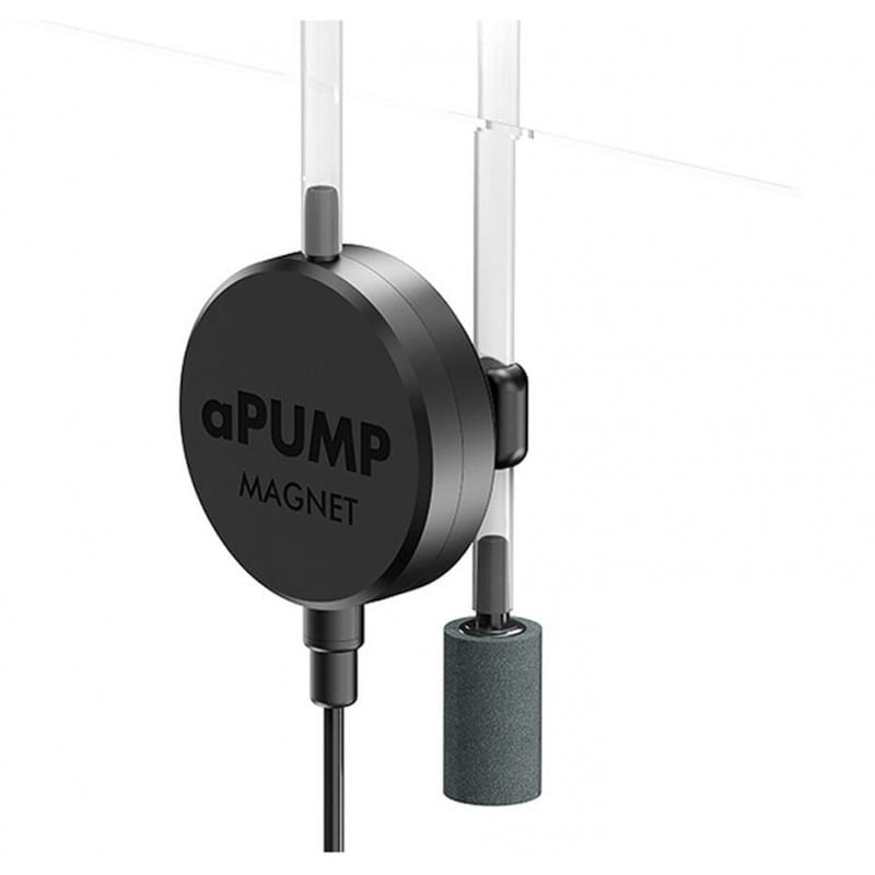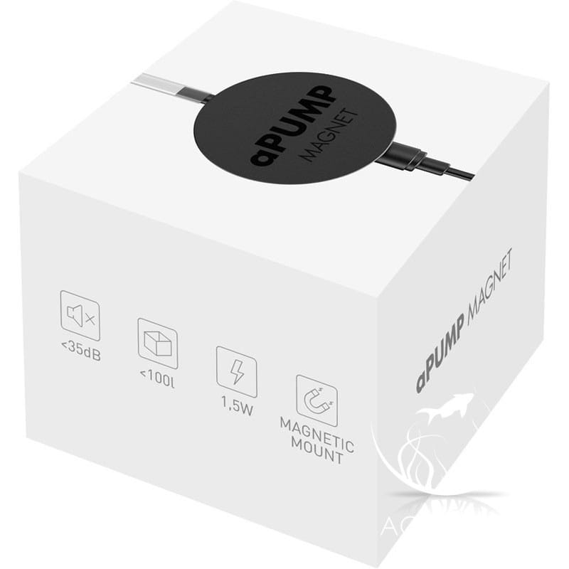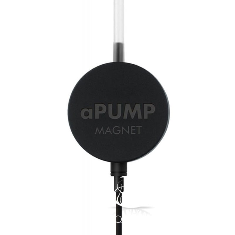 aPUMP Magnet – to niewielka, cicha pompka przeznaczona do akwariów do 100l. Wzbogaca wodę o cenny element jakim jest tlen. Ciśnienie strumienia powietrza wytwarzane pompką pozwala wykorzystać ją do akwariów o wysokości słupa wody do 80 cm. Dzięki wykorzystaniu najnowszych technologii poziom hałasu wynosi mniej niż 35dB. Pompka wyposażona jest w magnes, który umożliwia montaż urządzenia na szybie zbiornika w dowolnym miejscu. Dzięki takiemu nowoczesnemu rozwiązaniu pompka nie odkleja się jak w przypadku przyssawek. W przypadku braku energii elektrycznej woda nie cofnie się do pompki jak ma to miejsce w przypadku standardowych pompek.