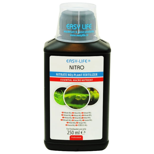 Nitro to skoncentrowany nawóz azotowy (NO3) z dodatkiem potasu (K). Niezbędny w każdym zbiorniku roślinnym. Dzięki tej odżywce rośliny rosną szybciej, nie tracą starszych liści, nie "naciagaja się" do światła, a przede wszystkim wyglądają zdrowo i pięknie. Jest to bardzo stabilny nawóz bez fosforanów. Zalecany poziom azotanów NO3 w wodzie to 10-20ppm.