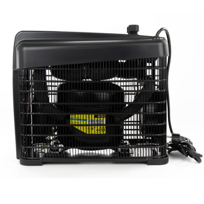 - Pojemność zbiornika: 150l (przy założeniach: temp wody w akwarium 25°C, temp powietrza w pomieszczeniu 30°C, zainstalowana moc:0,5W/l)