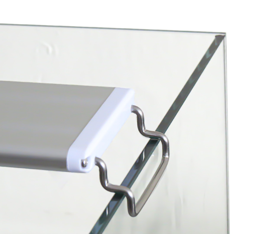 Solidna, a jednocześnie cienka aluminiowa obudowa z plastikowymi elementami jest elegancka i nowoczesna. Regulowane nóżki umożliwiają stabilne zamocowanie na krawędzi akwarium.