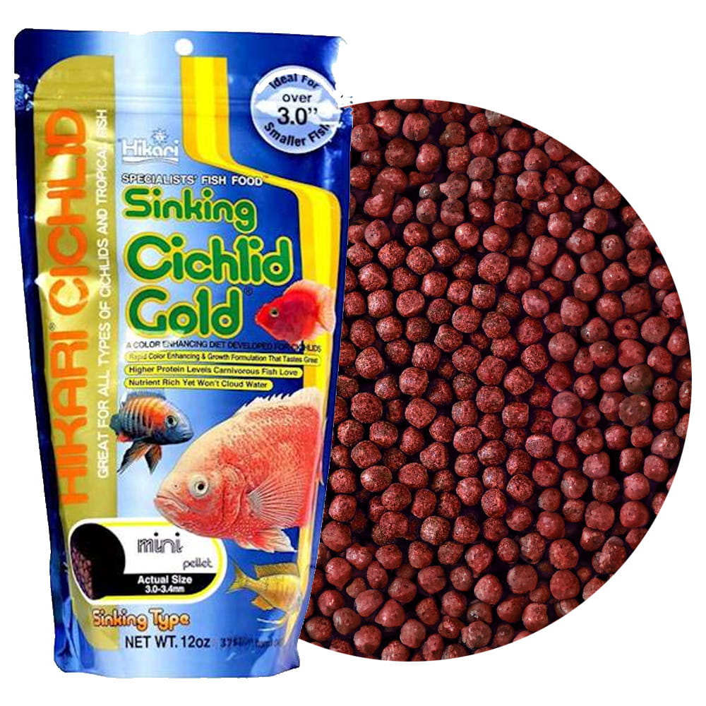 Hikari Cichlid Gold Sinking to wersja tonąca granulatu dla pielęgnic pobierających pokarm z dna lub ze środka toni, zawiera składniki pomagające uzyskać naturalne mocno nasycone kolory ciała.