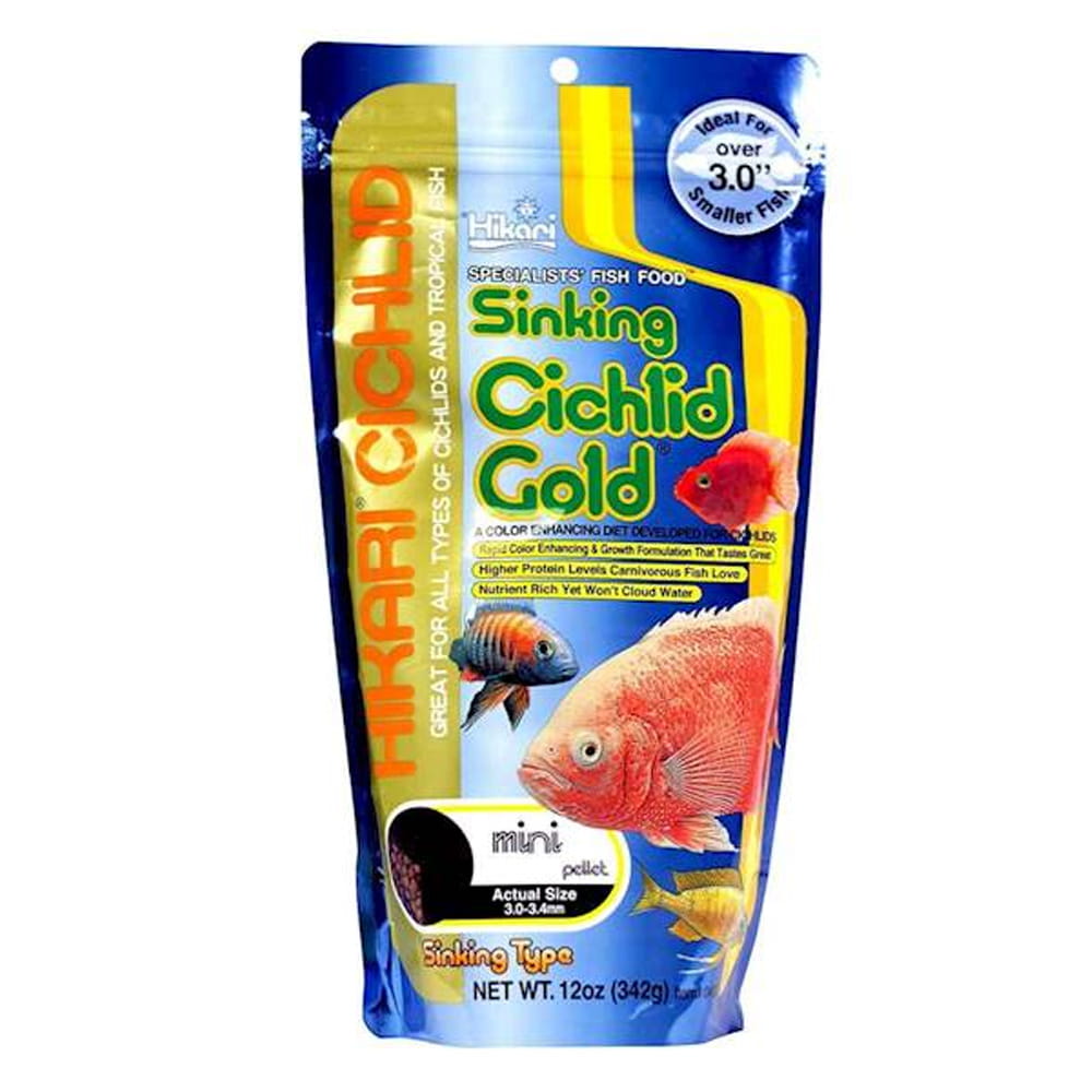 HIKARI CICHLID GOLD SINKING to wersja tonąca granulatu dla pielęgnic pobierających pokarm z dna lub ze środka toni, zawiera składniki pomagające uzyskać naturalne mocno nasycone kolory ciała.