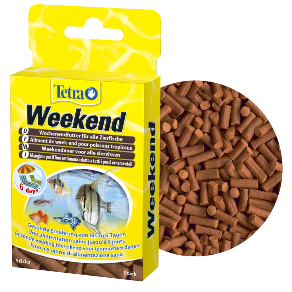 Tetra Tetramin weekend to pokarm weekendowy, zapewniający kompleksowe odżywianie ryb podczas Twojej nieobecności. Odpowiednia struktura pokarmu powoduje, że ten stopniowo staje się dostępny dla ryb. Nie powoduje zmętnienia wody oraz nie pleśnieje w akwarium. Tabela dawkowania znajduje się na opakowaniu.