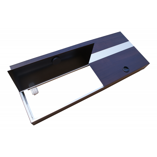 RAMA pokrywy wykonana jest ze specjalnie zaprojektowanego profilu aluminiowego pokrytego okleiną drewnopodobną z widoczną strukturą drewna ( stosujemy okleiny wysokiej jakości renomowanych firm ). Pokrywa to nowatorski projekt o przemyślanej konstrukcji gwarantującej wygodę użytkowania połączoną z bardzo wysoką jakością i wyjątkową estetyką.