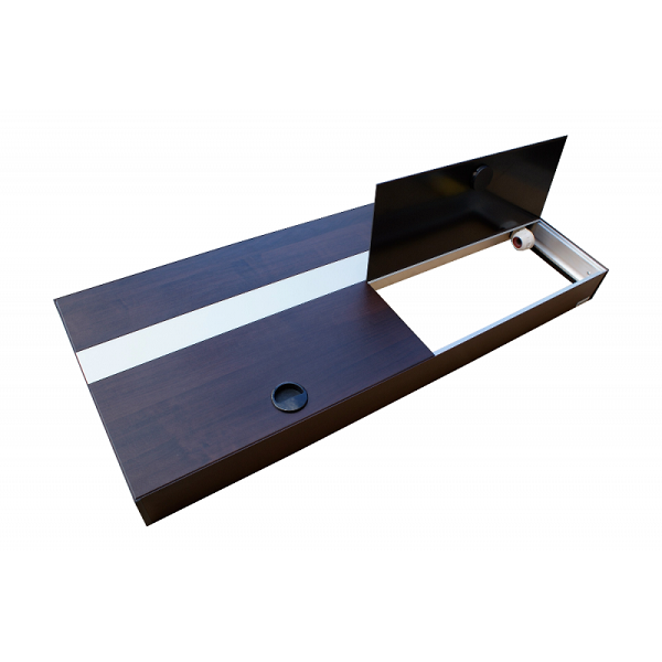 RAMA pokrywy wykonana jest ze specjalnie zaprojektowanego profilu aluminiowego pokrytego okleiną drewnopodobną z widoczną strukturą drewna ( stosujemy okleiny wysokiej jakości renomowanych firm ). Pokrywa to nowatorski projekt o przemyślanej konstrukcji gwarantującej wygodę użytkowania połączoną z bardzo wysoką jakością i wyjątkową estetyką.
