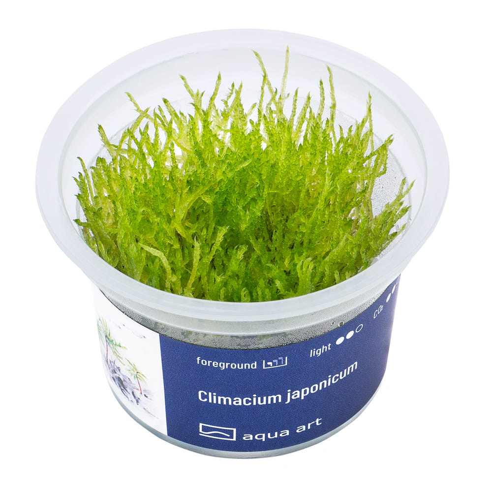 Climacium japonicum to piękny mech o niespotykanym wyglądzie. Tworzy niewielkie palemki jasnozielonych gałązek na cienkiej ciemnej łodydze. Roślina pochodzi z wolnej od glonów, chorób i ślimaków hodowli in vitro.