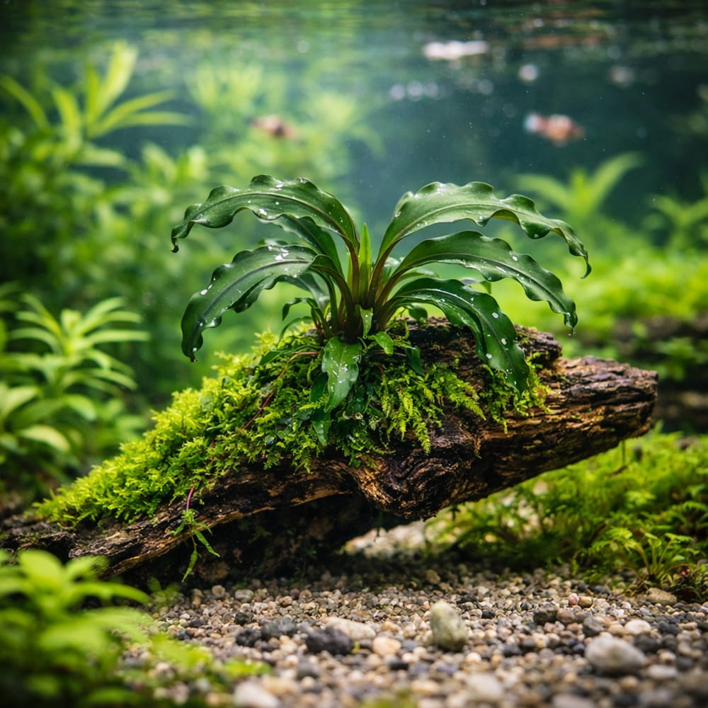 Bucephalandra Wavy Green jest rośliną epifityczną i najlepiej rozwija się przymocowana do elementów aranżacji. Sadzonkę należy stabilnie zamocować na korzeniu lub kamieniu przy użyciu kleju akwarystycznego do roślin i dekoracji.