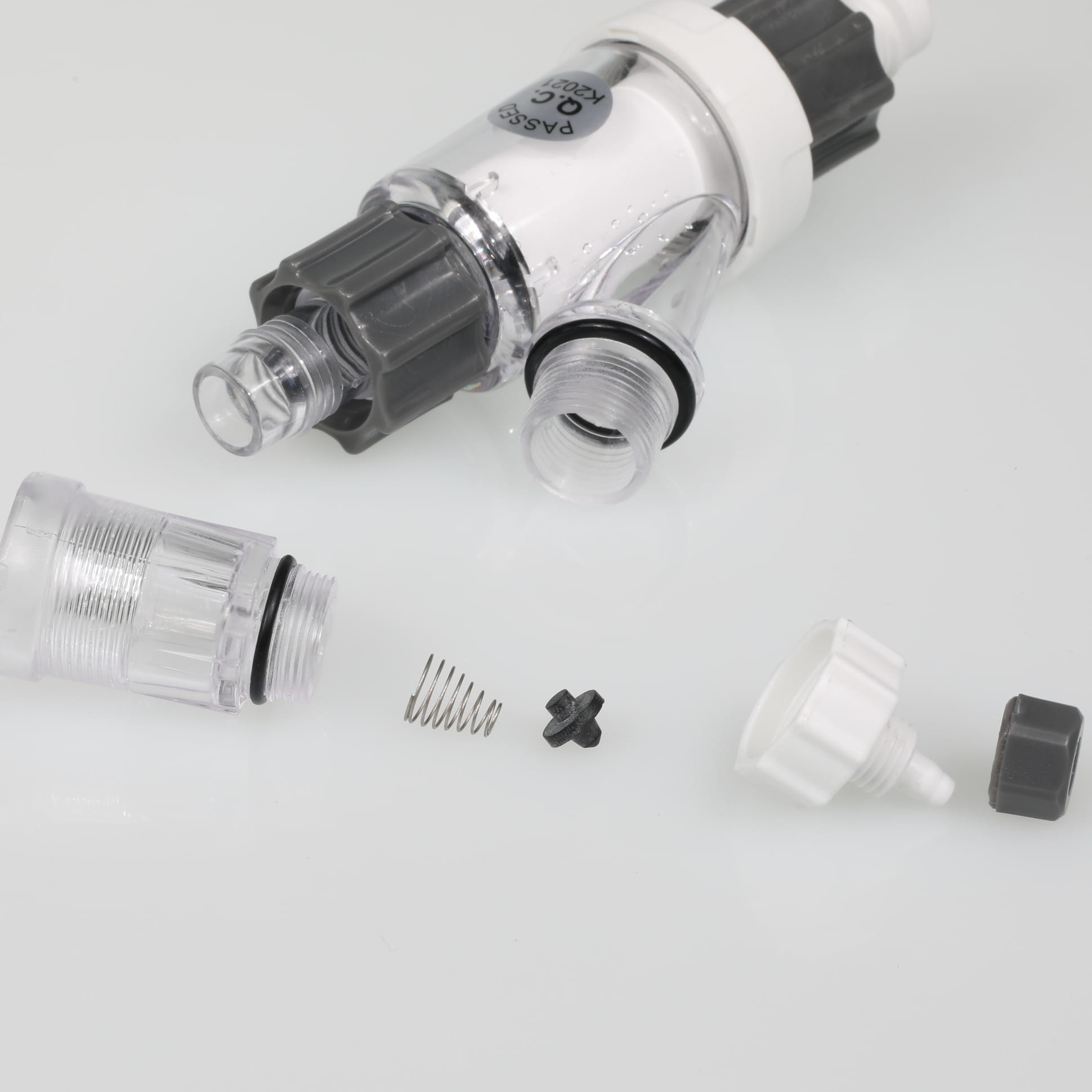 Zintegrowany z reaktorem licznik bąbelków, pozwala precyzyjnie kontrolować ilość gazu podawanego z butli. Zabezpieczeniem przed cofnięciem się wody z systemu jest wbudowany zawór zwrotny.