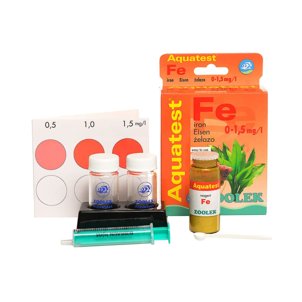 Służy do pomiaru stężenia kationów żelaza w zakresie 0-1,5 mg/l. Żelazo jest ważnym pierwiastkiem dla dobrego rozwoju roślin w akwarium. Pożądany poziom stężenia jonów żelaza (Fe II) w wodzie to 0,2-0,5 mg/l. Wyższe stężenia mogą być szkodliwe dla ryb, dlatego też należy regularnie sprawdzać zawartość tego pierwiastka.