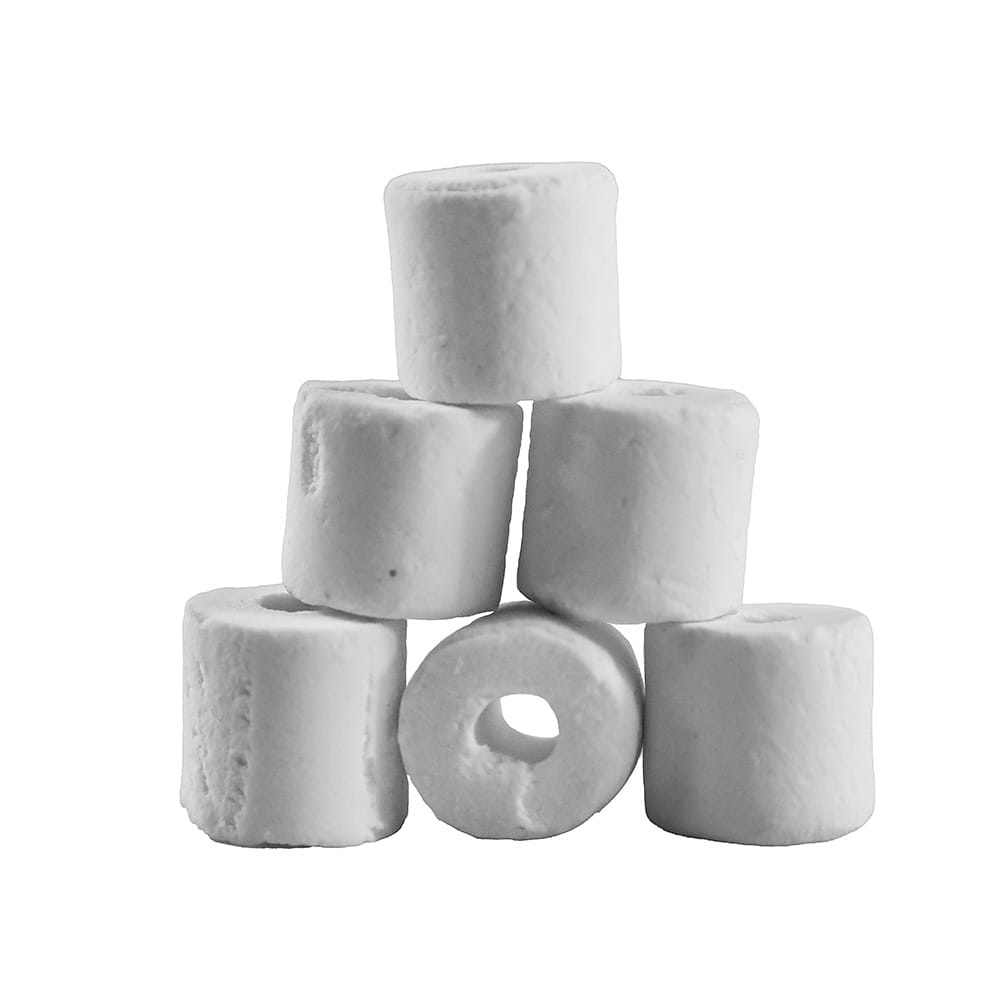 To najpopularniejsze bazowe złoże filtrujące. Dzięki porowatej strukturze oraz specyficznemu kształtowi, stwarza optymalne warunki do osiedlania oraz rozmnażania się bakterii, które żywią się wyłapanymi przez krążki ceramiczne związkami, tworzy to tzw. pożywkę biologiczną stając się nieodłącznym elementem każdej filtracji. Zasiedlające je bakterie filtracyjne znakomicie radzą sobie z oczyszczeniem wody, rozkładaniem amoniaku oraz azotynów poprawiając panujące w akwarium warunki. Zaleca się stosować jako pierwsze sypkie złoże, po filtracji mechanicznej w akwariach słodko i słonowodnych.