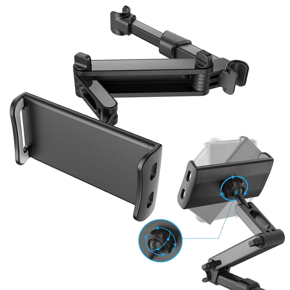 Uchwyt do telefonu/tabletu na zagłówek jest najlepszym rozwiązaniem, aby zapewnić pasażerom rozrywkę podczas długich, nudnych podróży samochodem. Możliwość pełnej regulacji kąta nachylenia telefonu w płaszczyźnie 360 stopni umożliwia jego ustawienie tak, aby wyświetlacz był doskonale widoczny (obrotowa głowica). Wygodne regulowane ramię dodatkowo zwiększa komfort użytkowania. Kompatybilny ze wszystkimi standardowymi smartfonami oraz tabletami.