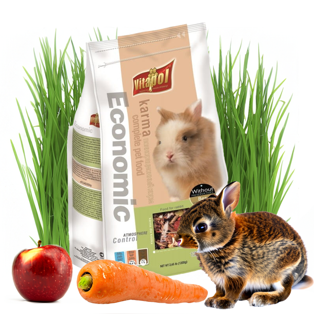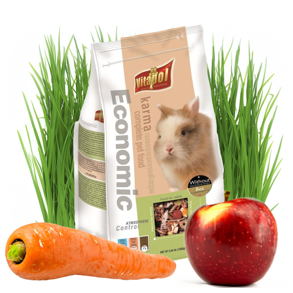 Pokarm Economic dla królika ze względu na konieczny udział wysokiej zawartości włókna w diecie dla zapewnienia prawidłowego funkcjonowania przewodu pokarmowego zwierząt, został wzbogacony o granulat z wysokiej jakości siana łąkowego (20%). Siano oprócz walorów pokarmowych skutecznie ściera siekacze królików dbając o ich prawidłowy wygląd oraz przyczynia się do usuwania zalegającej w przewodzie pokarmowym sierści. Na pełnowartościowy pokarm składają się również bogate w podstawowe składniki pokarmowe granulaty, zapewniające odpowiednie odżywienie królików. Udział warzyw jak burak i marchewka dostarczają wielu cennych naturalnych witamin i minerałów.
