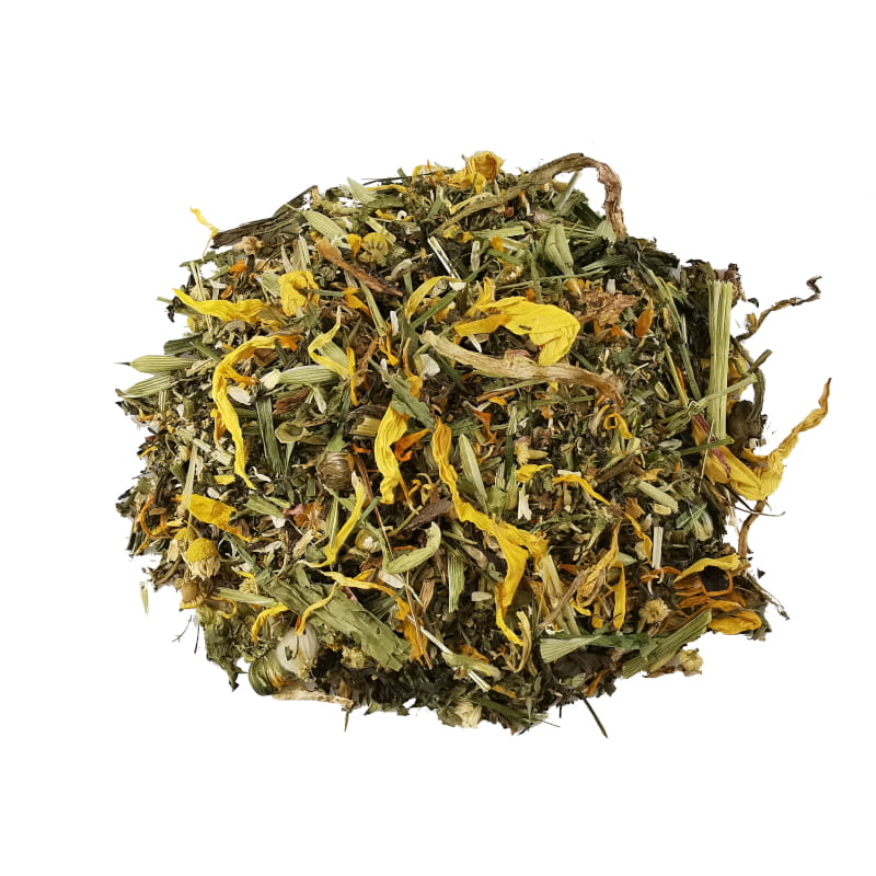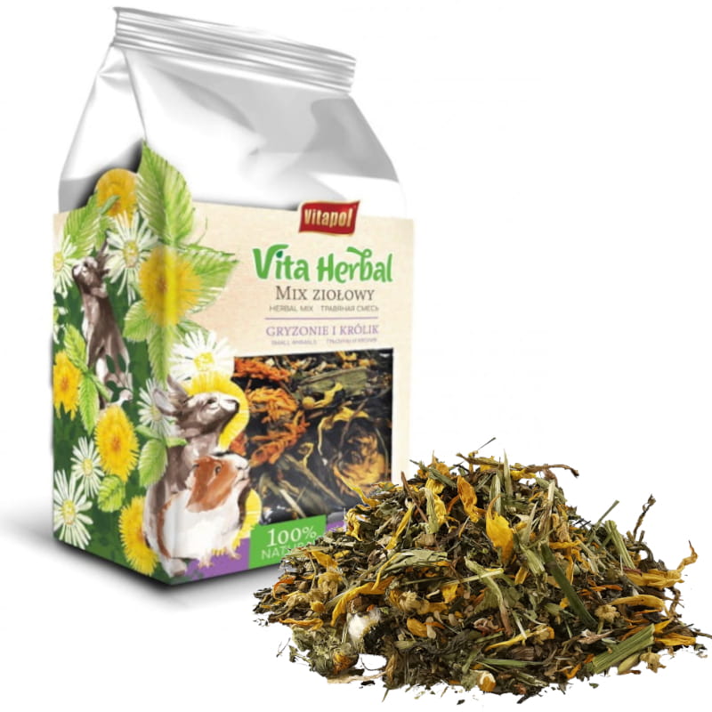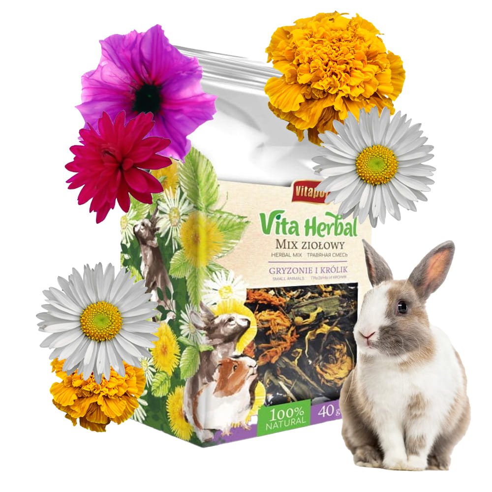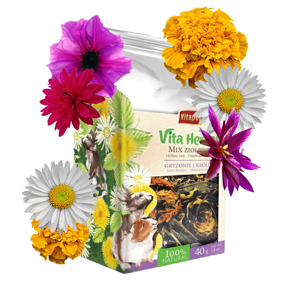 W jej składzie znajduje się wiele naturalnych i najlepszej jakości polskich ziół takich jak pokrzywa, mniszek, babka lancetowata i wiele innych. Babka lancetowata bogata w glikozydy, ksantofil, śluzy, karotenoidy, związki krzemu, garbniki, sole potasu, magnezu i cynku, witaminę C. Liście mniszka oczyszczają organizm ze szkodliwych związków przemiany materii oraz poprawiają trawienie. Kwiaty nagietka zawiera m.in. olejek eteryczny , flawonoidy, karotenoidy. Wspomagają układ odpornościowy gryzoni oraz działają przeciwbakteryjnie oraz przeciwzapalnie. Można podawać samodzielnie, dodawać do karmy podstawowej lub mieszać z siankiem.