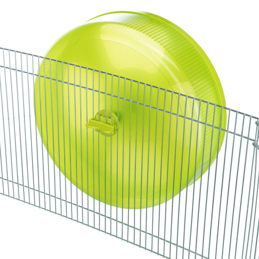 Zamknięta tylna strona zapewni bezpieczeństwo i uniemożliwi przytrzaśnięcie się pupila między kołowrotkiem a klatką. Można go umieścić jako wolnostojący w klatce, lub zawiesić na jej boku.