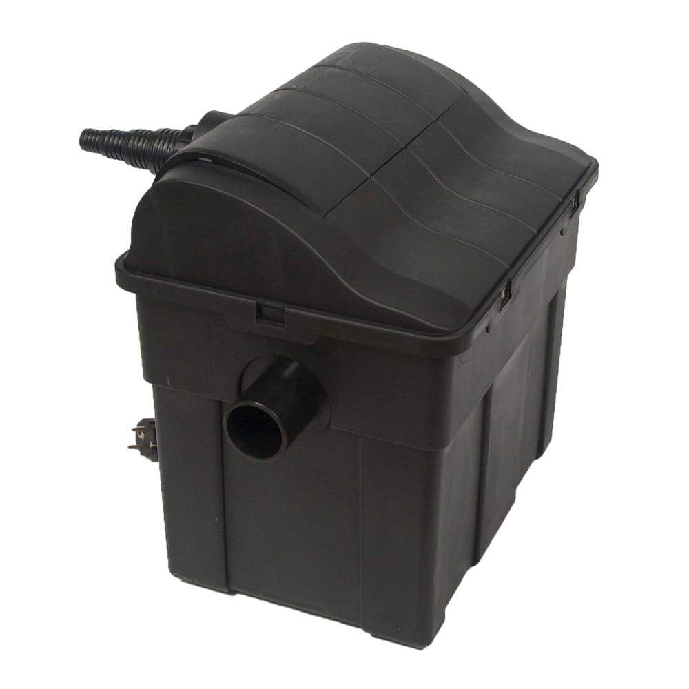 Filtr przepływowy AQUA NOVA NUB-6000 służy do filtrowania i sterylizacji wody w oczku wodnym czy stawie ogrodowym. Może on być umieszczony przy brzegu oczka lub nad wypływem wodospadu. Do swojej pracy potrzebuję dodatkowo pompy cyrkulacyjnej lub fontannowej. Pompa powinna posiadać odpowiednią moc, aby przepływ wody był optymalny pod kątem filtracji. Filtr może być zakopany częściowo w ziemi.