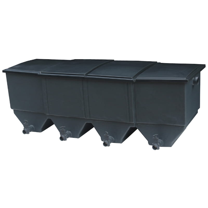 Filtry BIOklar dostępne są także w wersji grawitacyjnej, w której woda ze stawu napływa do filtra pod wpływem siły grawitacji i po przefiltrowaniu przez wszystkie materiały jest wypompowywana z ostatniej komory.