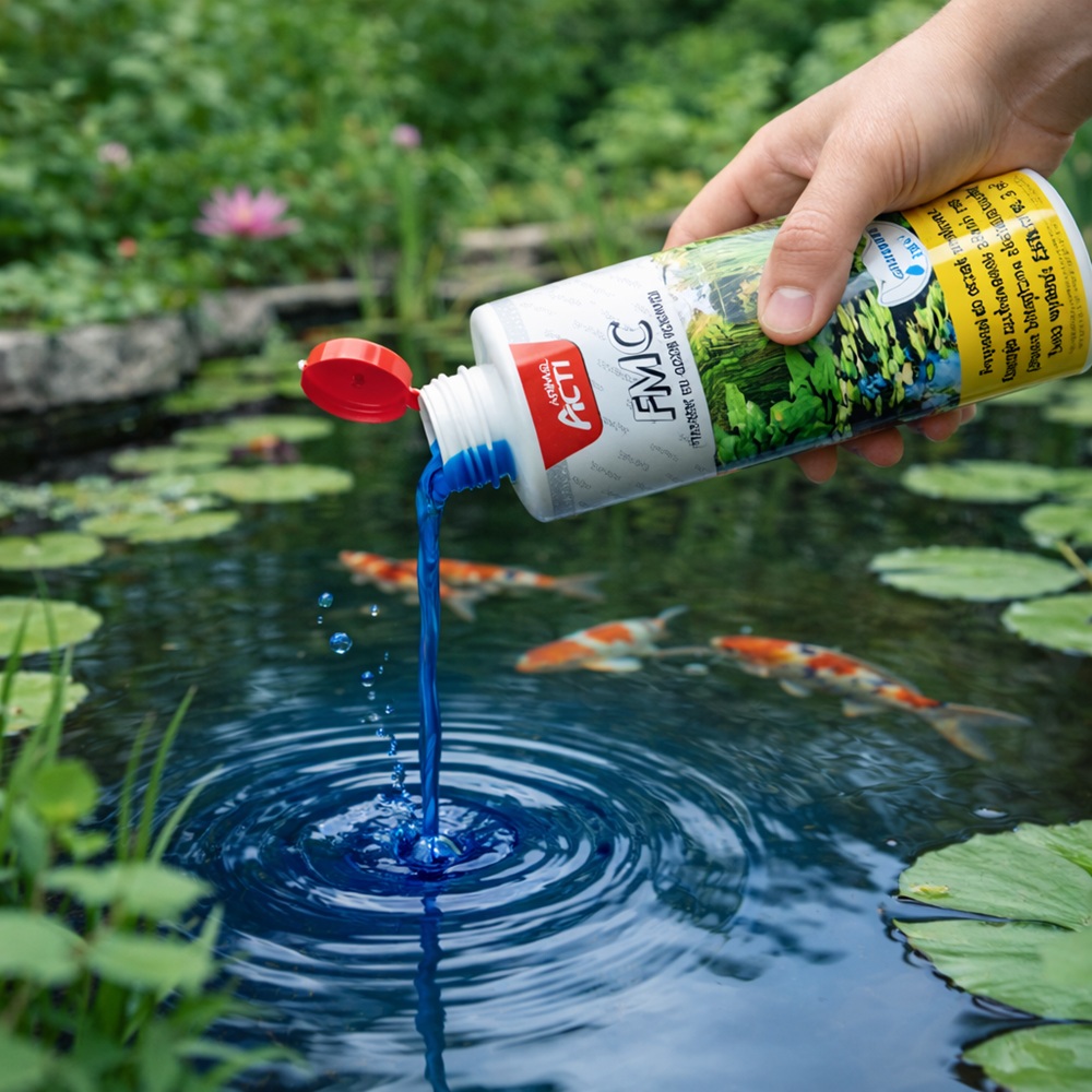AQUAEL Acti Pond FMC 250ml - wysoce skuteczny preparat do odkażania wody w oczku wodnym do 5000L. Eliminuje szkodliwe bakterie, wirusy i grzyby mogące powodować choroby ryb. Bezpieczny dla ryb, stosowany też do dezynfekcji sprzętu i basenów dla ryb stawowych.
