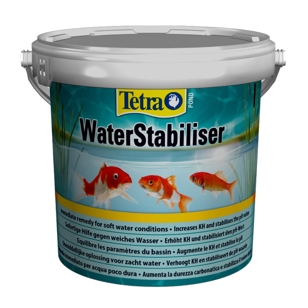 Wartość KH między 4° a 10° dKH pomaga ustabilizować wartość pH. Jeśli twardość węglanowa jest zbyt niska, wartość pH może szybko wzrosnąć do wartości zagrażających życiu mieszkańców stawu, zwłaszcza w letnie dni i podczas wzrostu glonów. Stosowanie Tetra Pond WaterStabiliser jest szczególnie zalecane w stawach mocno obsadzonych roślinami i rybami, a także w stawach z karpiami koi, ponieważ w takich przypadkach łatwiej mogą wystąpić krytycznie niskie wartości KH.