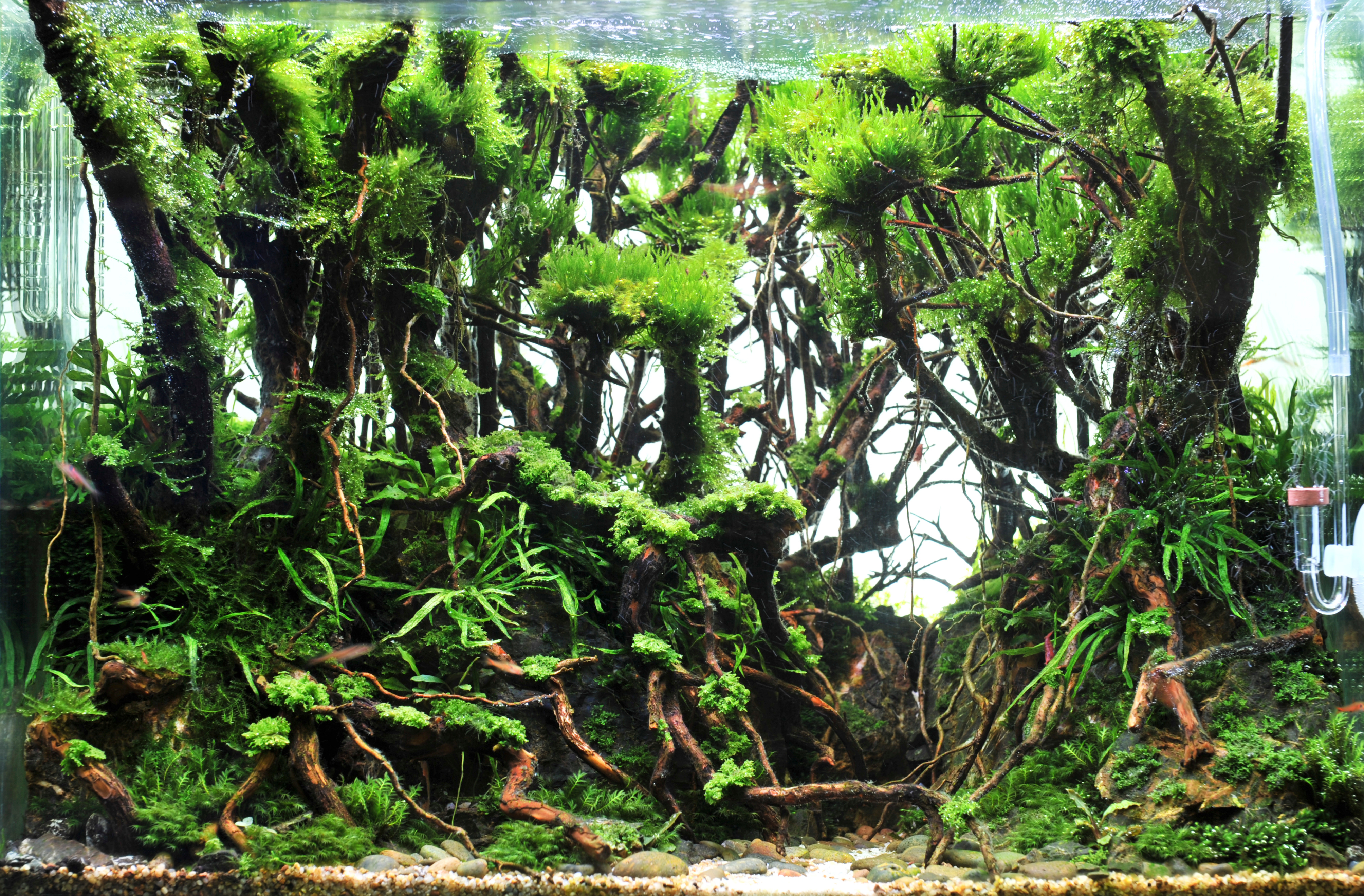 Warto wspomnieć o najświeższym trendzie w aranżowaniu akwarium naturalnego jest nim tzw. diorama. Styl w którym duża ilość elementów zostaje ze sobą sklejona, tworząc pewne wycinki krajobrazów, a nawet całe drzewa w pomniejszonej skali. Dużą rolę odgrywa tutaj kunszt autora, odpowiednia gra drobnolistnymi roślinami, perspektywą oraz głębią, sprawia że zaaranżowane w ten sposób akwarium wydaje się dużo większe. W tym stylu wykorzystywane są często kamienie dragon stone oraz korzenie red moor wood, oraz drobnolistne rośliny mchy wątrobowce i epifity.