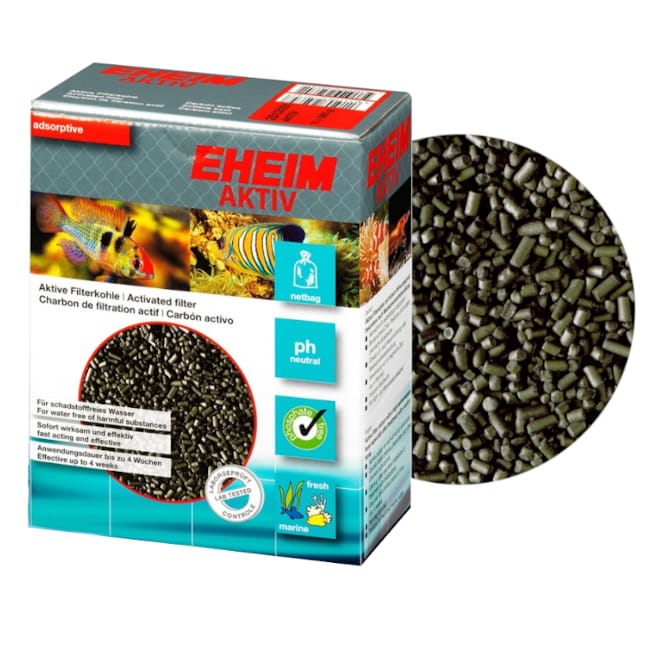 Węgiel aktywny odpowiada za absorbowanie barwników jak np. garbniki uwalniające się intensywnie ze świeżych korzeni, tym samym poprawia klarowność wody. Wykorzystywany jest po leczeniu zwierząt wodnych do szybkiego pozbycia się z wody leków. Jest również doskonałym siedliskiem dla bakterii nitryfikujących. Pojemność sorpcyjna węgla aktywowanego jest ograniczona. Długość działania węgla w akwarium jest zależna od jakości produktu. Wynosi od kilku tygodni do kilku miesięcy dla produktów różnych firm, zalecana jest jego regularna wymiana. Podczas leczenia ryb należy zrezygnować z filtracji wody przez to medium filtracyjne.