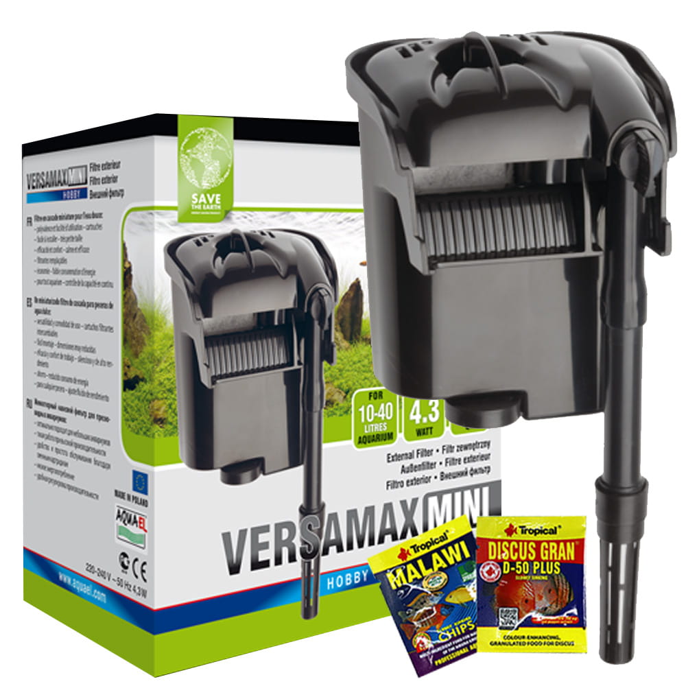 Filtry kaskadowe (przelewowe) łączą zalety filtrów wewnętrznych i kanistrowych, czyli łatwość instalacji z dużą wydajnością i uniwersalnością zastosowania. Świetnie sprawdzają się zarówno w dużych jak i w małych akwariach. Specjalnie z myślą o miłośnikach tych ostatnich AQUAEL prezentuje – miniaturowy filtr VERSAMAX (FZN) MINI.
