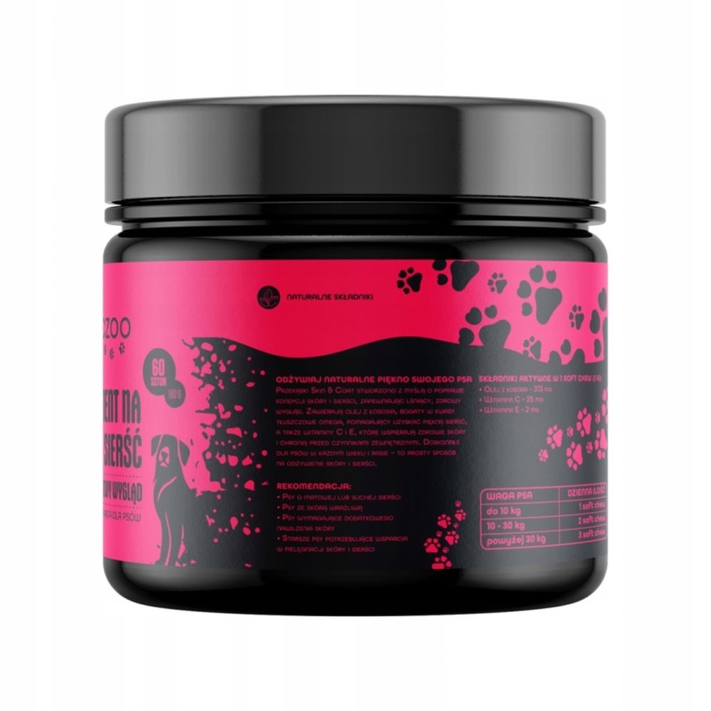 Gaczoo, suplement dla psów, skóra i sierść, przysmaki dla psa, kwasy omega, witaminy dla psa, pielęgnacja sierści, zdrowa skóraTagi produktu