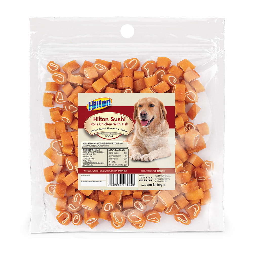 SUSHI KURCZAK Z RYBĄ przysmak dla psa 500g HILTON