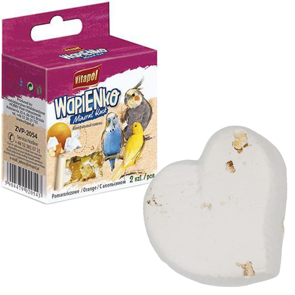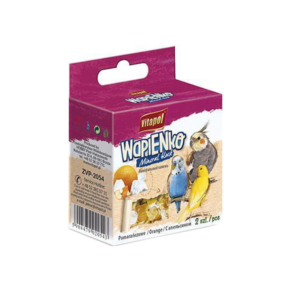 Vitapol, kostka wapienna dla ptaków, wapń dla ptaków, aromat pomarańczy, suplement mineralny, ptaki ozdobne, 2 sztukiTagi produktu