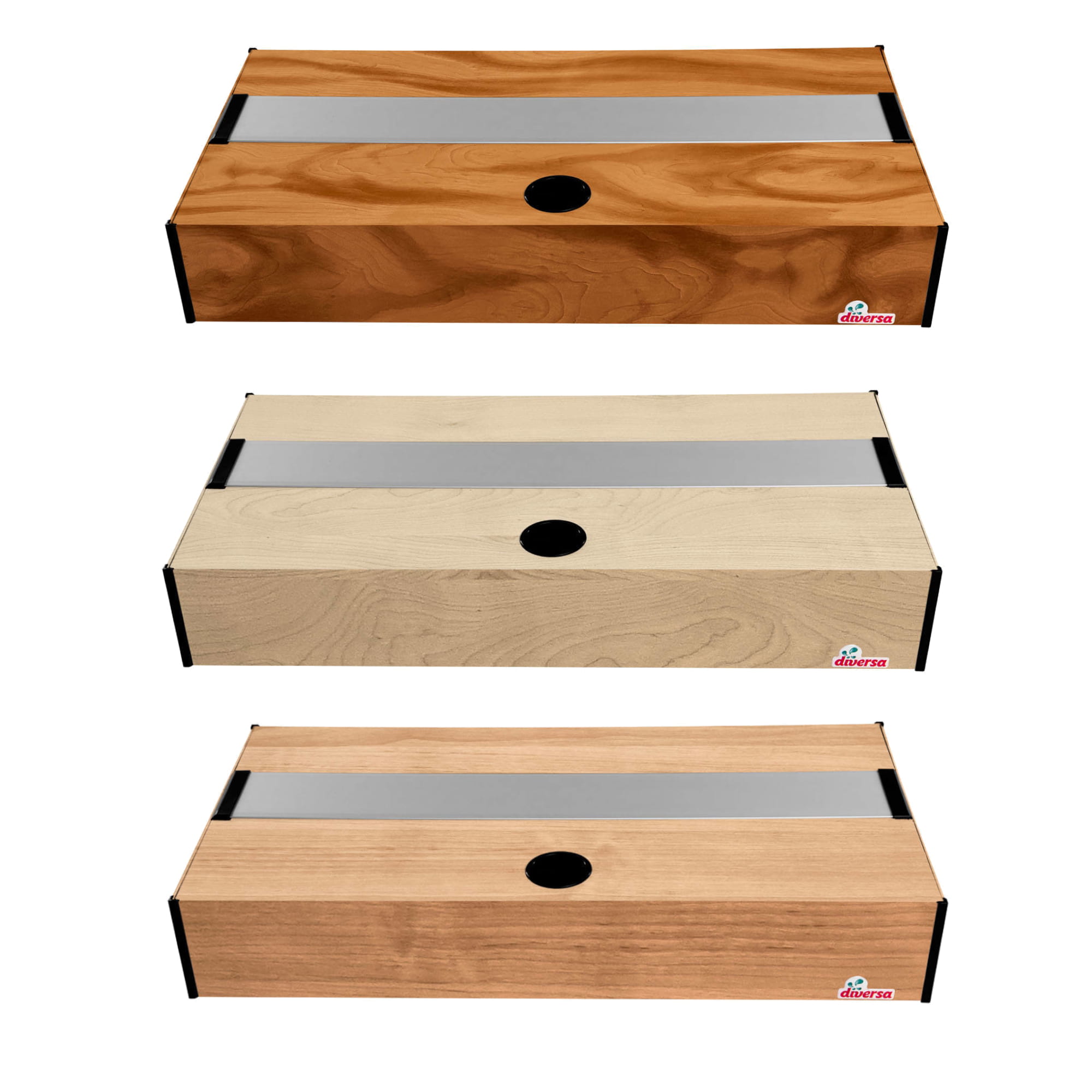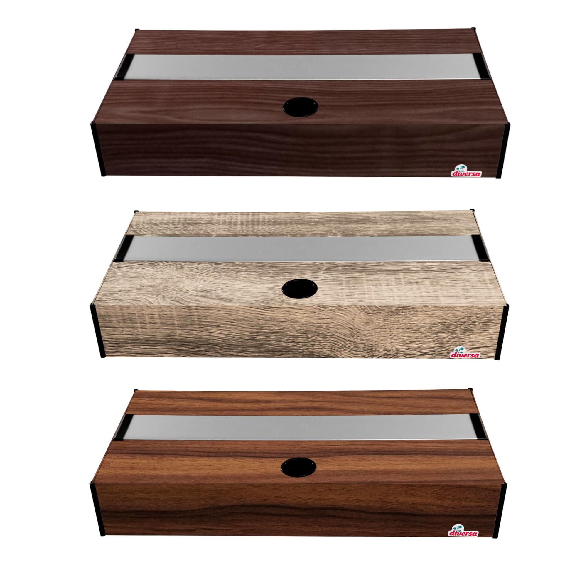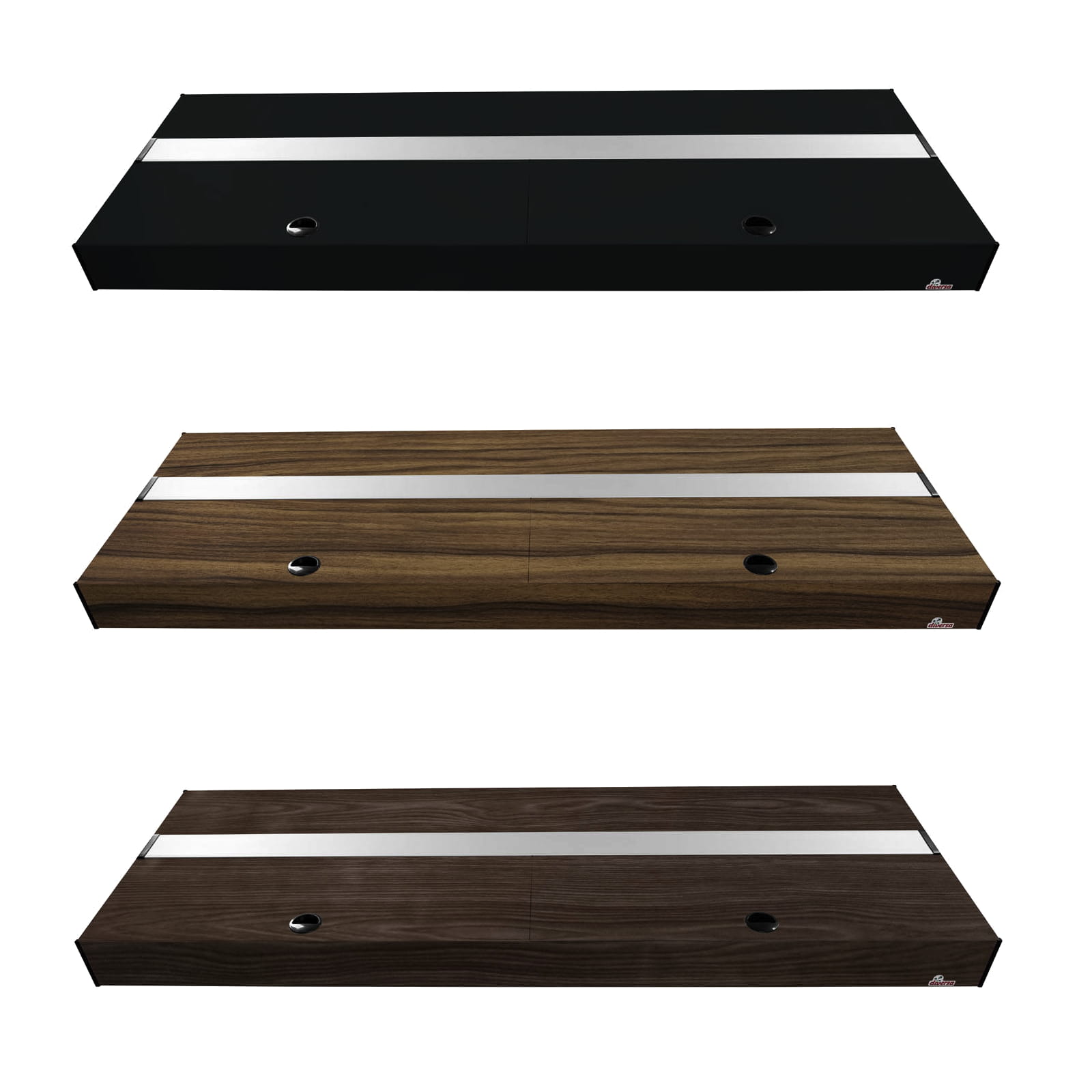 Pokrywa aluminiowa marki Diversa to produkt najwyższej jakości, wykonany ze specjalnie zaprojektowanych profili. Aluminium cechuje trwałość i wytrzymałość w związku z czym jest to surowiec świetnie sprawujący się w akwarystyce. Pokrywa Platino posiada system klapek wykonanych z tworzywa. Ułatwiają one utrzymanie akwarium w czystości bez potrzeby zdejmowania całej pokrywy. Liczba klap różni się w zależności od rozmiaru produktu. Pokrywy aluminiowe posiadają również dyskretnie umieszczony otwór, który pozwala na zamontowanie potrzebnego osprzętowania. Całość zwieńczają narożniki zabezpieczające brzegi pokrywy. Wysokość całkowita pokrywy to 10cm, z czego 17mm nachodzi na akwarium.