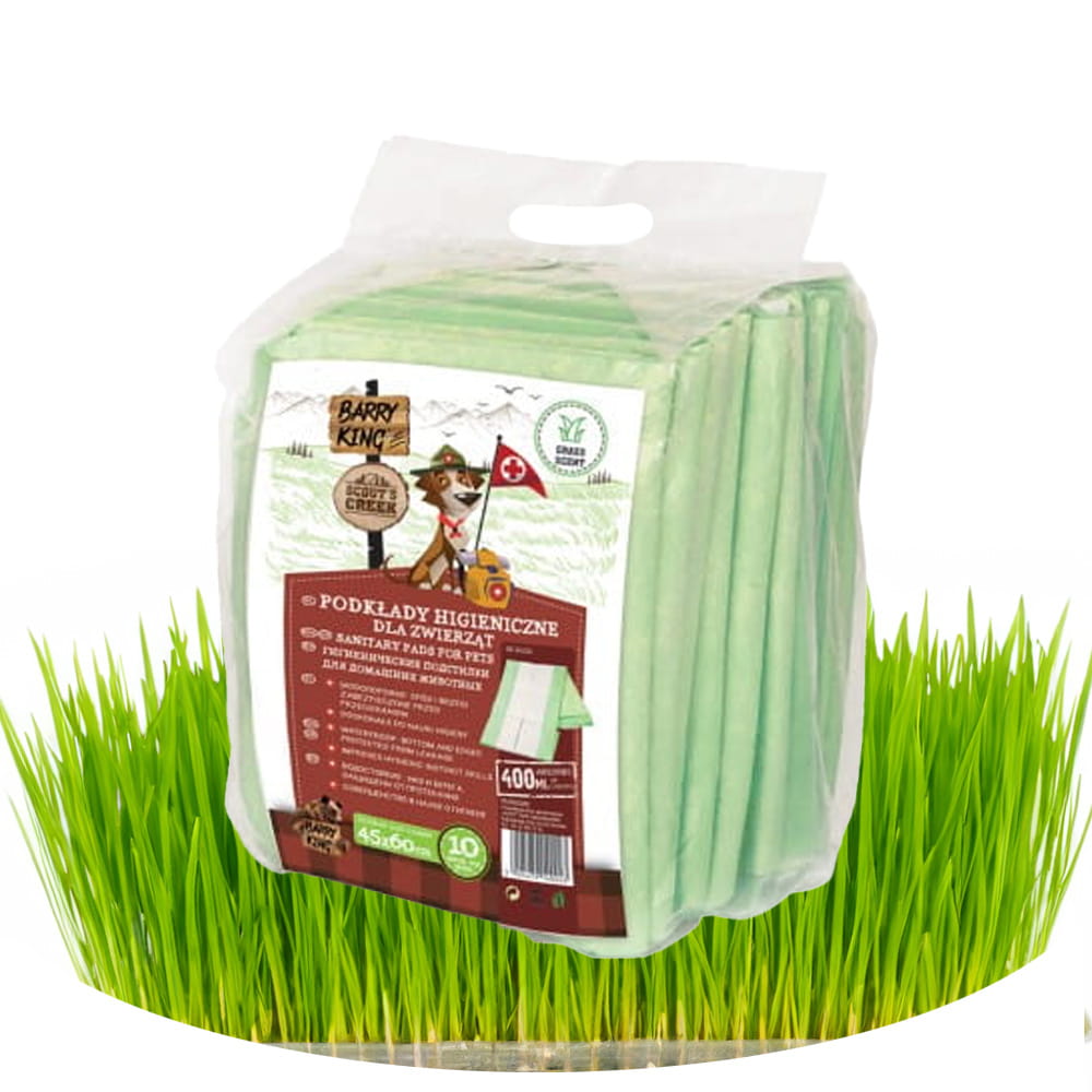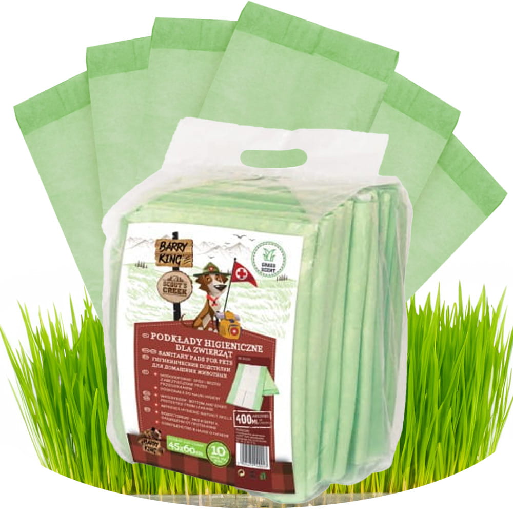 Podkłady higieniczne to idealne rozwiązanie do nauki szczeniaka czystości oraz możliwość załatwienia potrzeb psa gdy zostaje sam w domu. Podkład jest niezwykle chłonny i stabilny. Dzięki temu nie jest jednorazowy - piesek może skorzystać kilka razy nim wymienimy na nowy. Produkt wykonany z naturalnej celulozy o długich włóknach. Spód oraz krawędzie podkładu wykonane są z folii nieprzepuszczającej wilgoci. Idealnie sprawdzają się jako podłoże do legowisk dla ciężarnych psów i kotów oraz po zabiegach kastracji i sterylizacji. Pomagają utrzymać porządek w domu przy szczeniakach i młodych kotach. Przez zapach trawy, szczeniak będzie się przyzwyczajał do załatwiania potrzeb na łonie natury, a starsze psy nie będą czuły dyskomfortu.