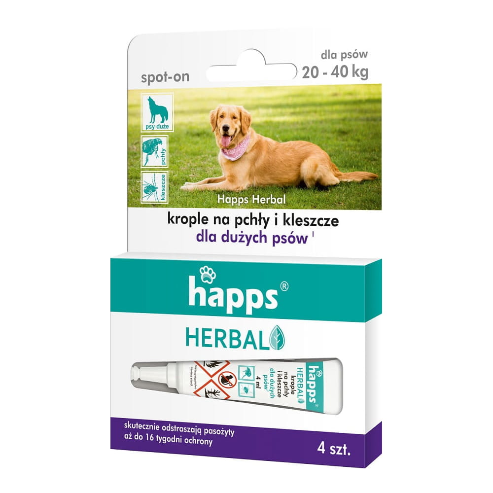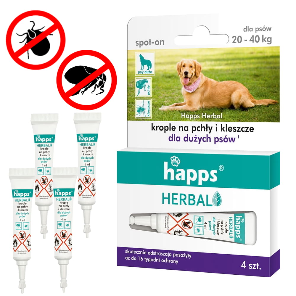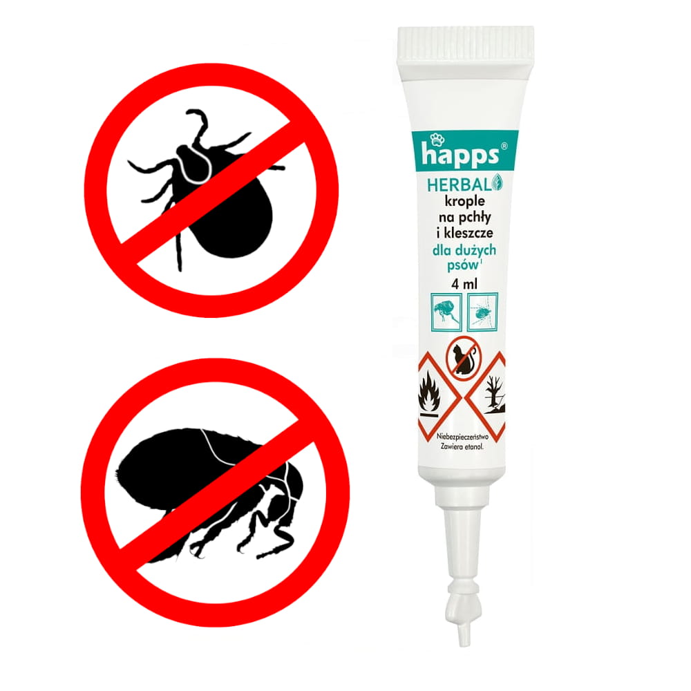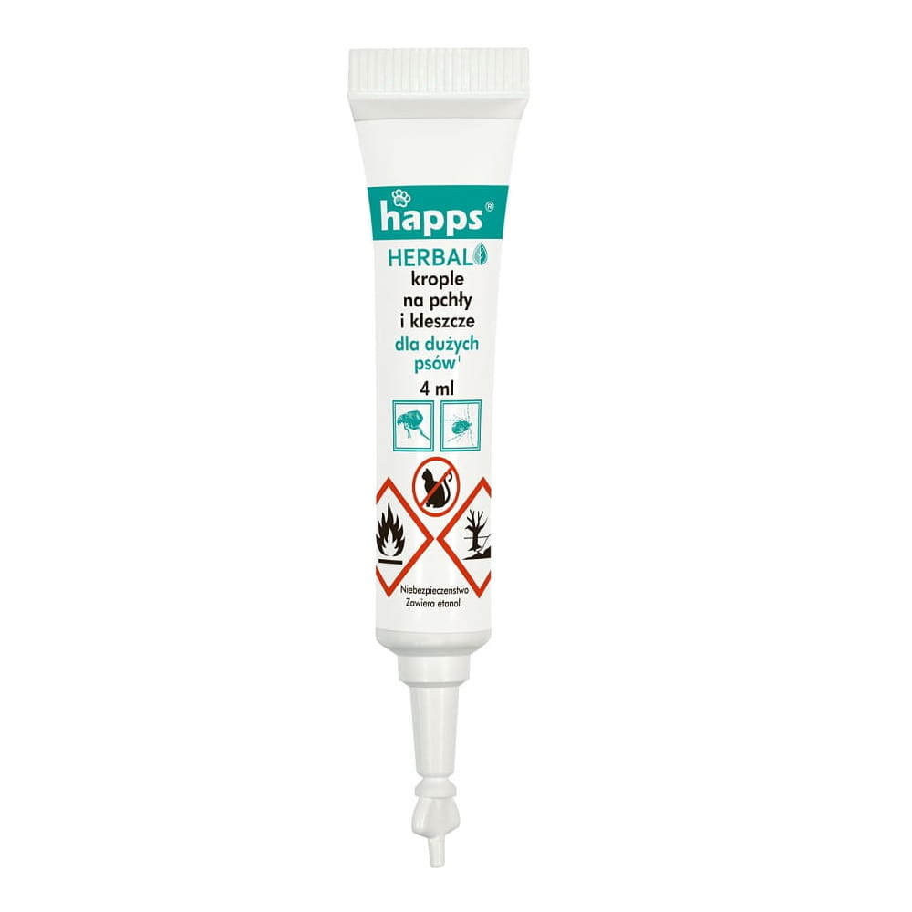 Wygodne i łatwe w użyciu krople Happs Herbal zapewnią Twojemu psu ochronę przez pchłami i kleszczami nawet do 16 tygodni!