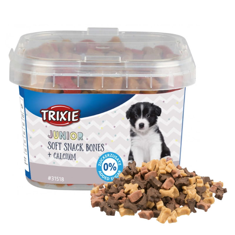 Junior Soft Snack Bones to miękkie, pyszne przysmaki w kształcie kości o wielkości ok. 1 cm, przygotowane z myślą o szczeniakach. Smaczki są dedykowane do specjalnych wymagań młodych zwierząt. W produkcie znajdziemy kurczaka, jagnięcinę oraz łososia, a także wapń - niezbędny składnik diety szczeniaka oraz psów zwłaszcza w okresie dorastania. Atutem produktu jest brak zawartości cukru. Produkt sprzedawany jest w wiaderku, dzięki czemu przysmaki przez długi czas zachowują świeżość.