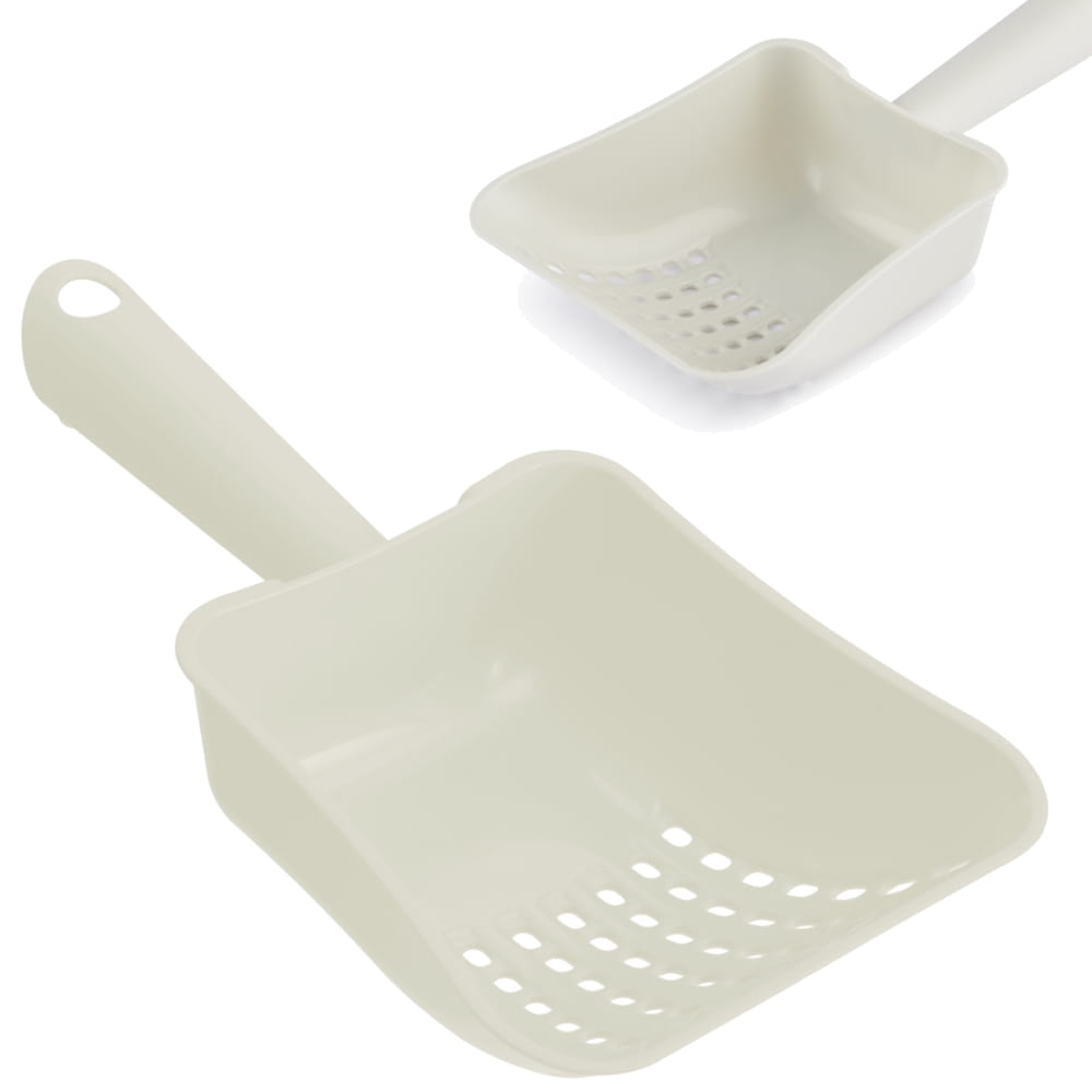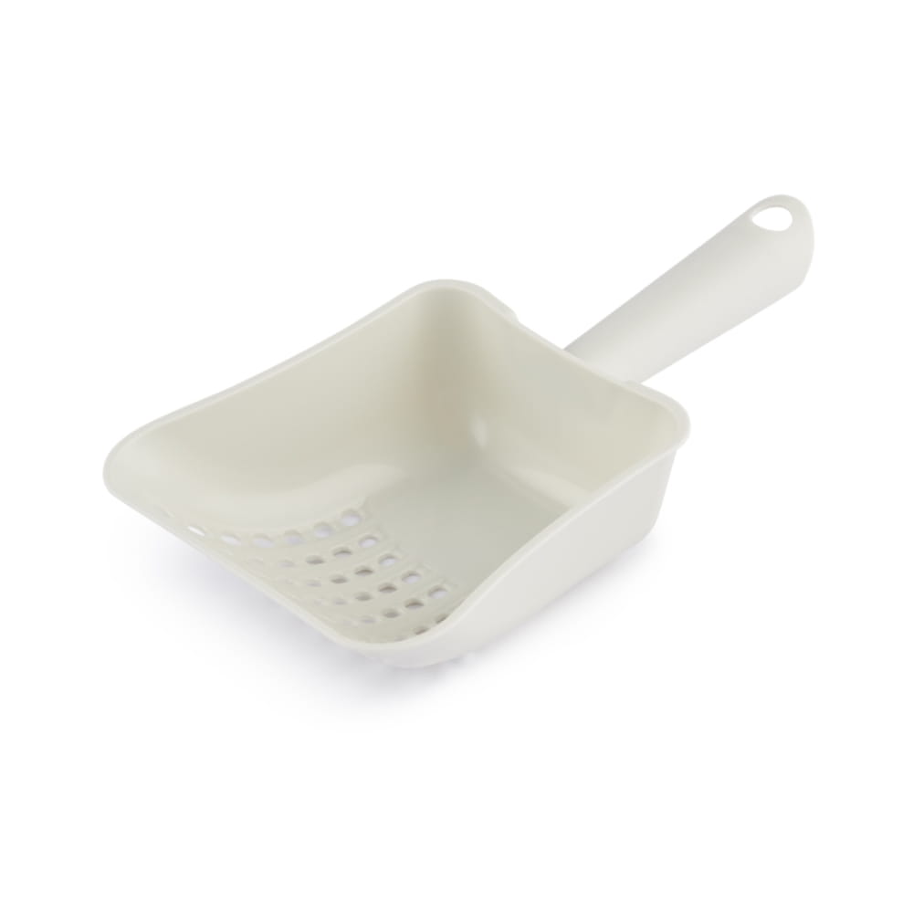 Łopatka higieniczna do usuwania odchodów z kuwety. Wykonana z wysokiej jakości plastiku 98% z recyklingu w kolorze beżowym. Wąskie otwory - idealna zarówno do piasków, żwirków niezbrylających się np. silikonowych jak i do bentonitowych czy drewnianych. Dodatkowo posiada specjalne ząbki za spodzie służące do rozgarniania żwirku. Specjalnie wyprofilowana, aby zapewnić jak najwygodniejsze użytkowanie.