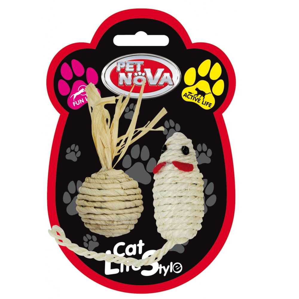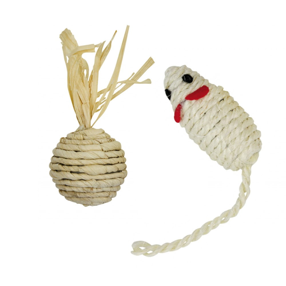 Zabawka kota sznurkowa sizalowa zestaw MYSZKA 7x3cm oraz PIŁKA 4cm
